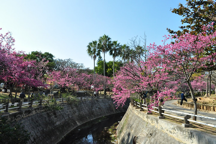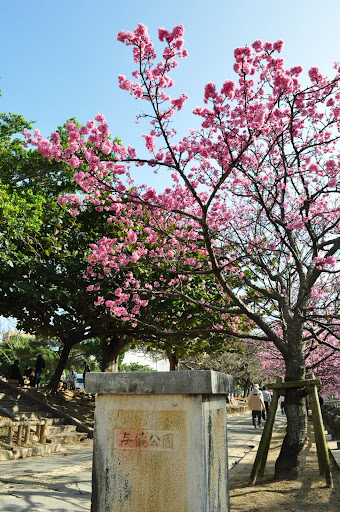 放完行李後馬上出發,繼續迷路迷呀迷迷著,迷到了金城町石疊道,這時候的沖繩剛好是櫻花盛開的時期,所以在路邊不時可以看見幾株櫻花樹,正點!