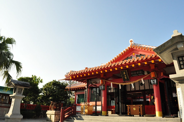 接著下去繼續往前走,離福州園很近的波上宮,完完全全傳統日式風格的神社,也瞧見了一些人很虔誠地朝拜,WOO…真的跟電視上演的一模一樣哎…
